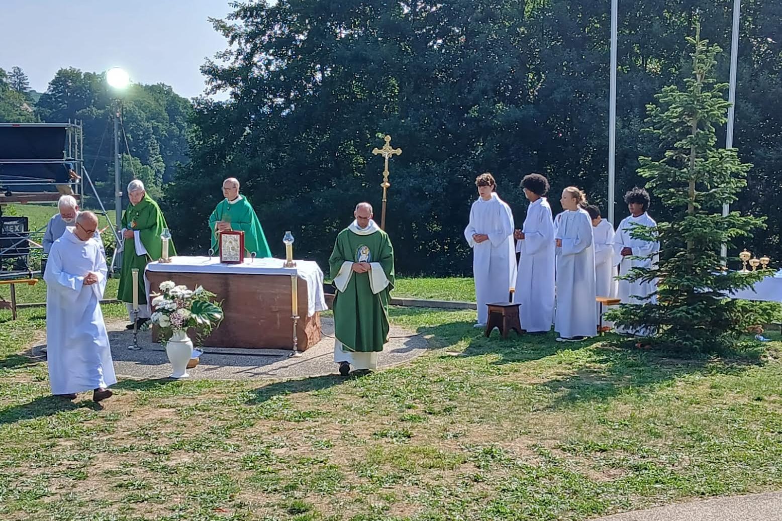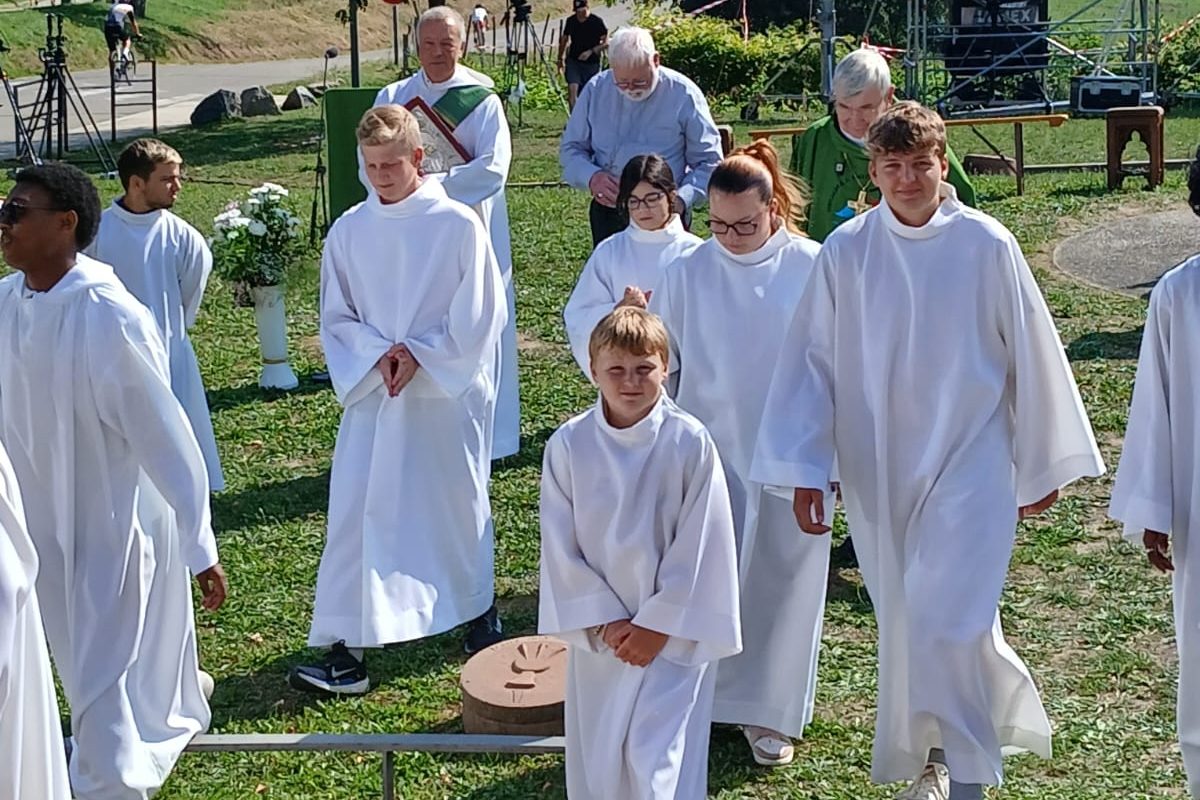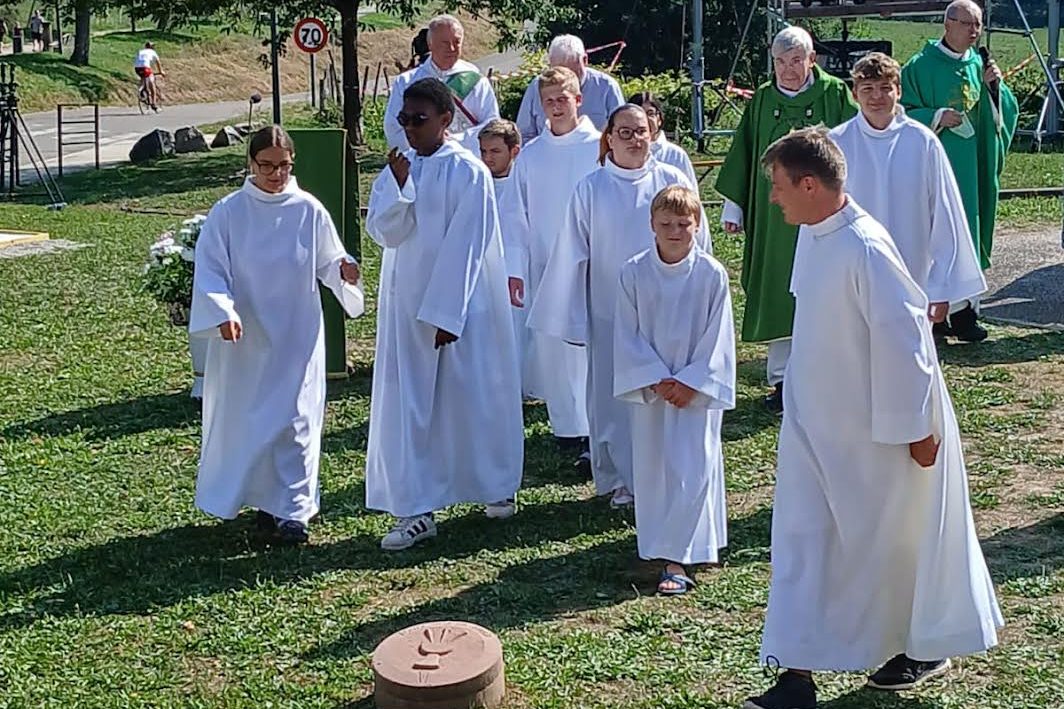 Les servants d’autel du Florival ont été sollicités pour participer aux messes de l’assomption le 15 août et le 17 août 2025 à la Basilique de Thierenbach filmées et diffusées sur France 2 dans » Le Jour du Seigneur « . Ils ont répondu nombreux, réunissant des jeunes de Buhl, de Soultz, de Jungholtz et de Guebwiller, avec une quinzaine de jeunes de la vallée. Une expérience qu’ils ont appréciée, qui les ont marqué, ponctuée d’échanges, de prières, de rencontres et une belle occasion d’échanger avec Monseigneur DELANNOY.