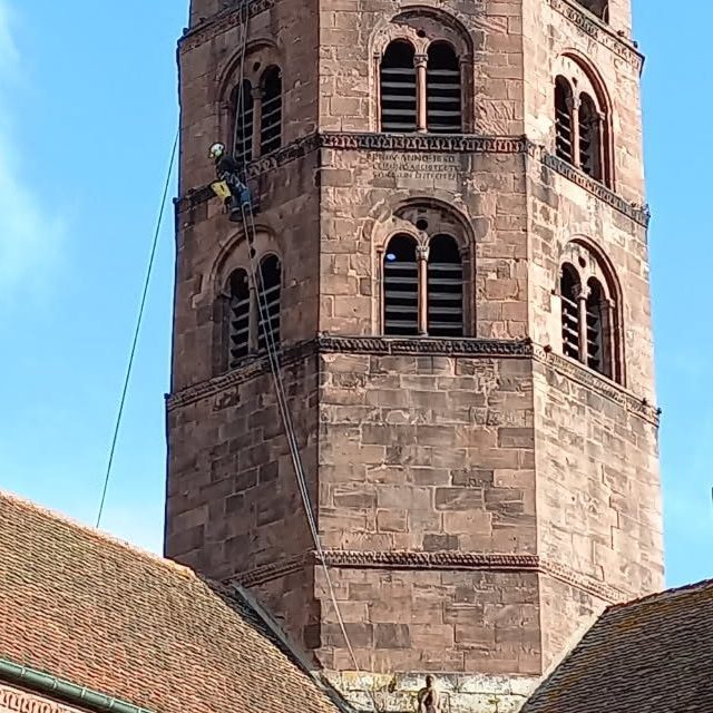 Une intervention annuelle par la société CAP VERTICAL en charge de l’entretien et désherbage du toit de l’église Saint Léger