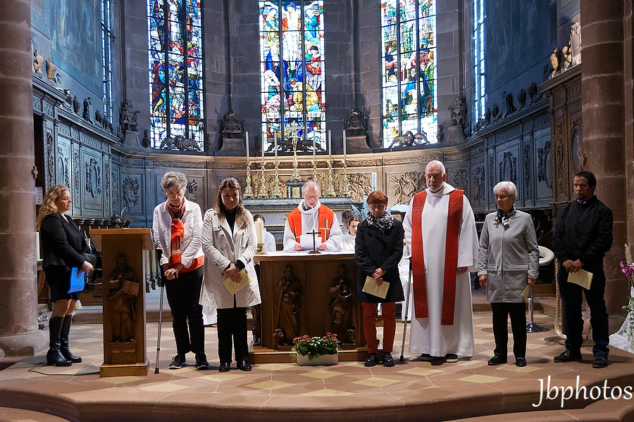 La célébration dominicale s’est tenue en l’église Saint Léger et a été présidée par le vicaire épiscopal, le père Olivier Becker et concélébrée par le père Norbert Wegscheider. Au cours de cette cérémonie l’équipe d’animation pastorale (EAP) a été présentée et se tient désormais prête à entrer dans ses fonctions. Il s’agit de Elisabeth Dufresne, Martine Galliath, Anne-Marie Braun, Imerita Ribero et Eugène Rakotoarisoa. L’EAP se réunit une fois par mois autour du père Norbert pour contribuer à l’animation de la vie de la communauté autour de thématiques comme la liturgie, la solidarité ou le catéchisme, la communication avec les paroissiens et la valorisation de notre patrimoine sacré. Pour entrer en contact avec ces membres, il suffit d’appeler ou de se rendre au presbytère Notre Dame. Lire la suite avec d’autres photos ICI