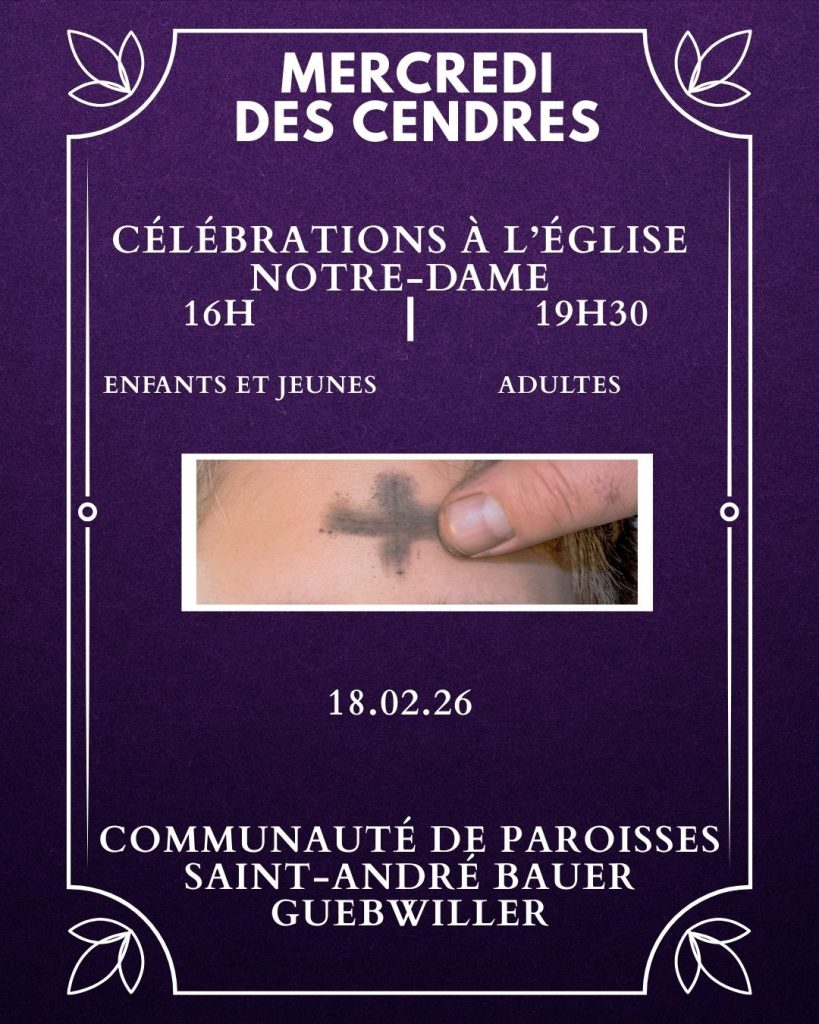 Il n’y aura pas de célébrations en semaine (9H) à partir du 12 janvier 2026 jusqu’au 15 mars 2026.
