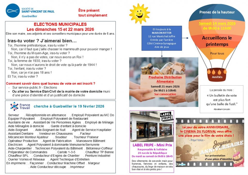 2025 Conférence St Vincent de Paul, Guebwiller 4) Les activités à venir RETOUR conférence St Vincent de Paul