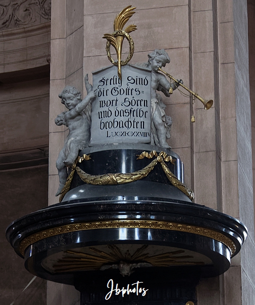 Voici la traduction du texte en allemand sur la chaire (entre les 2 anges) de l’église Notre Dame :